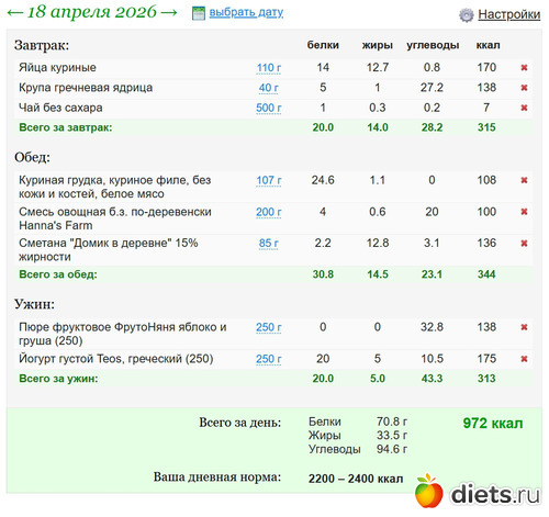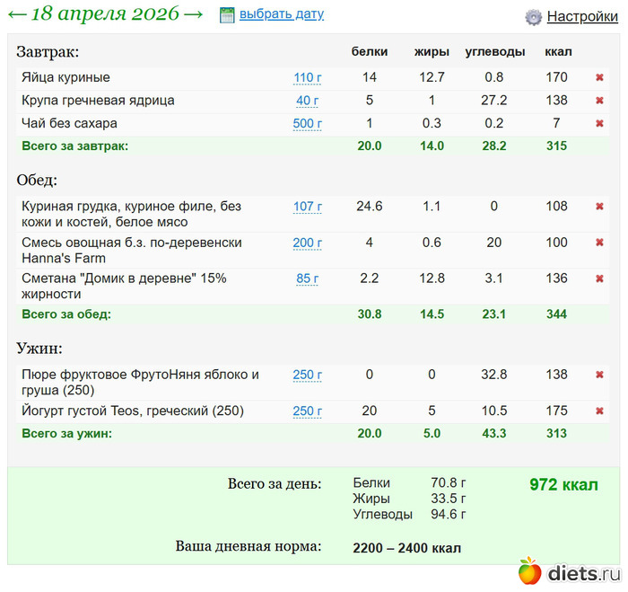 Калорийность продуктов