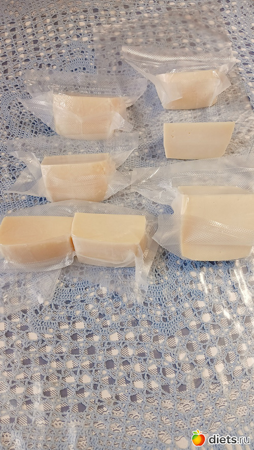 Сегодня опять разрезала головку сыра, расфасовала кусочки.