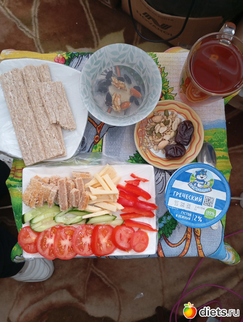 До обеда я работала и пила воду. Ореховую смесь съела на завтрак.