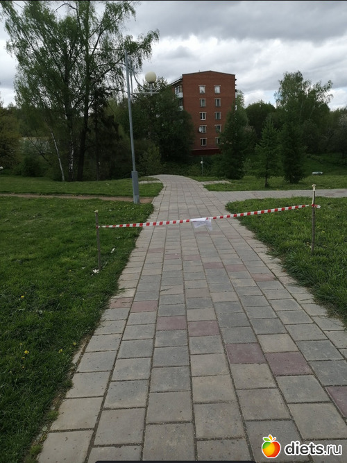 А это дорожку в парк закрыли лентой, типа нельзя гулять