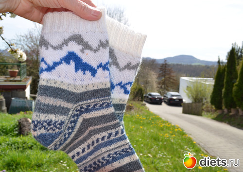 Божечки, какие уютные носочки.Фанатею от носков, у меня в коллекции каких только нет .Но, ваши прям в сердечко, особенно с голубым.Потрясенна вашим усердием и талантом.