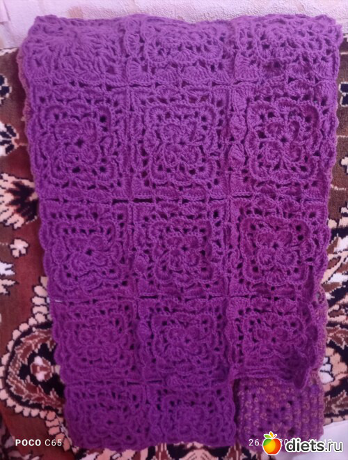 Вчера что-то поздно легла, не сразу заснула... Сегодня отсыпалась. Сама себе дала задание каждый день вязать по квадратному мотиву, собирая из них новую тунику из квадратов. Одна сторона двуцветная, другая с красивым узором в один цвет. (так у меня складывается, вяжу из того, что осталось. И теперь не знаю, какая сторона красивее. Склоняюсь к мнению что одноцветная. Сначала думала, что перед поцветастей, а спинку гладкой сделать, а теперь подумываю наоборот. Обшлага одноцветных рукавов украсить рядом двухцветных мотивов по любому. Вот ведь как, теперь буду думать до последнего- где зад, где перед. Перед ответственным решением можно будет померить, а уж потом довязать последние квадратики и полуквадратики.