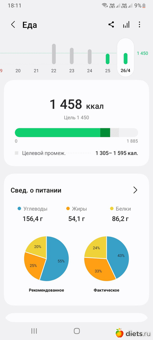 С каждым приемом пищи старалась кушать порцию салата из зелени и овощей. Питание 3-4 раза в день. Первые дни вечером уже после ужина я срывалась, но вчера заметила уже некоторое снижение по калоражу и отсутствие предночного приема еды. Цель установить норму 1480-1550 кк в день. Записываю каждый прием пищи. Затем постараюсь просто после ужина не перекусывать и соблюдать голодный интервал до утра без еды. Возможно захочу делать интервальные дневные разгрузочные дни. Посмотрю по самочувствию. Продолжать прогулки и плавание.
