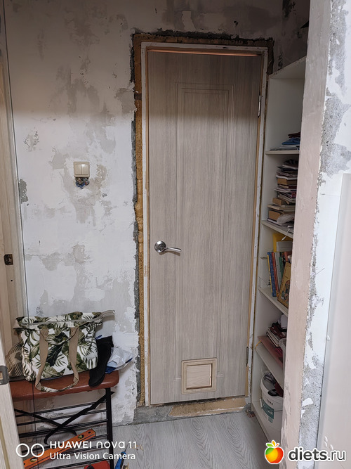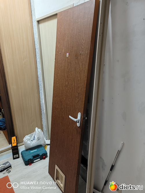 Сначала муж чуть не вырезал дырку для кота вверху двери