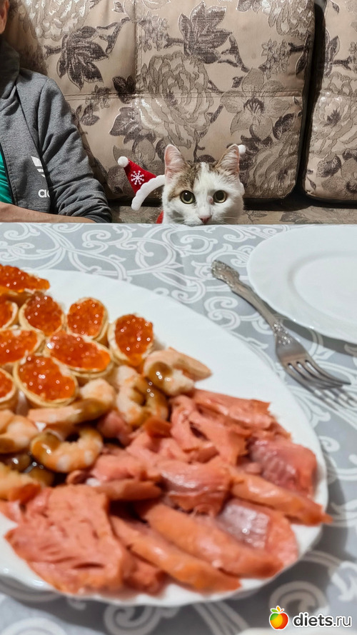Не пойму, куда она больше смотрит - в объектив или на икру