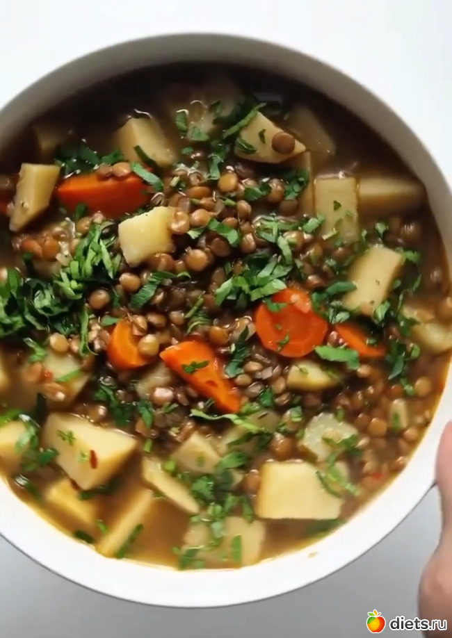 3. Всыпать чечевицу, залить водой/бульоном, довести до кипения и варить 20–30 минут.