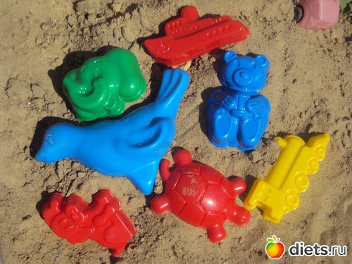 Вот такие формочки для песка купили доче... уже испробовала. У неё было много всего для песка,