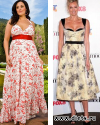Наконец, третий тип фигуры «банан» - это, пожалуй, наименее проблемный тип фигуры: его обладательницы всегда сохраняют стройность и никогда не страдают от лишнего веса. Впрочем, тип фигуры «банан» нельзя назвать идеальным – проблема в маленьком размере груди и «мальчишеских» бедрах, из-за чего обладательницам такого типа фигуры зачастую недостает женственности. Приблизиться к идеалу «песочных часов» в таком случае помогают приталенные жакеты с талией, подчеркнутой ремнем, нижнее белье push-up, делающее грудь более пышной, топы с рюшами, крупными принтами и оригинальными деталями. На обладательницах типа фигуры «банан» выгоднее всего выглядят платья с запахом, вошедшие в моду благодаря Диане фон Фюрстенберг, и ансамбли с драпировкой в стиле коллекции Burberry, добавляющей объема бедрам.