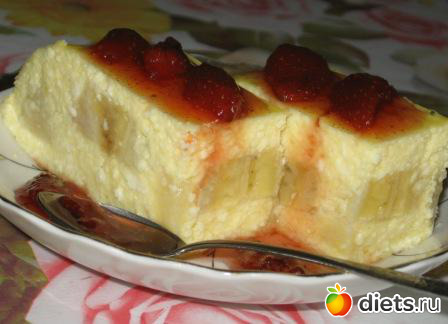 Сегодня готовила, полюбившуюся нам творожную запеканку в пароварке с бананами.