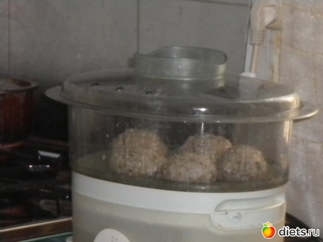 Все хорошо смешать, слепить котлетки и готовить в пароварке минут 30.
