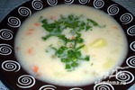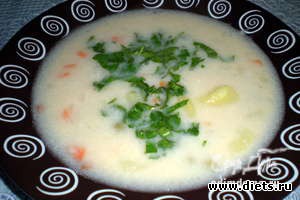 7 Влить в суп молоко и варить еще 5-6 мин. Петрушку мелко нарубить, при подаче посыпать суп зеленью. Приятного аппетита!