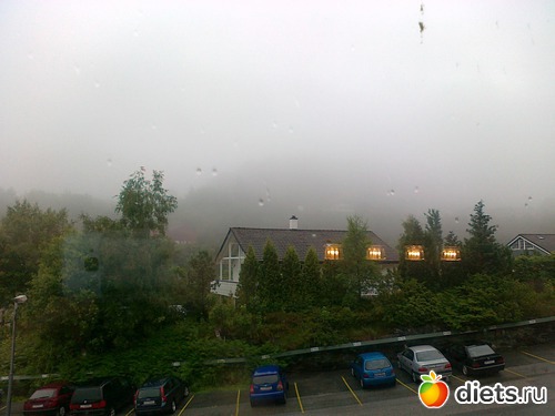 Гуляла не 30 минут как обещала, а минут 15 всего, но почти бегом, потому что в Бергене сегодня почти 100% влажность. Скоро у меня вырастут жабры, ведь незря Берген называют мировой столицей дождей))))) Вот, полюбуйтесь, это я с балкона снимала: