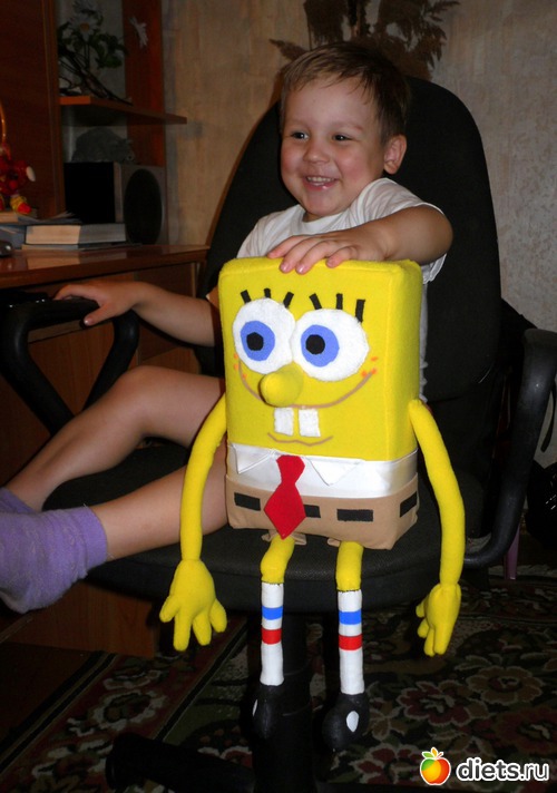 А самая главная моя работа недели, это подарок сынишке! Он заказал мне свою любимую игрушку Спанч Боба. Дождался!