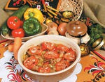 Говядину порезать порционными кусками, обжарить на маргарине и опустить в кипящую воду, тушить до полуготовности. Тыкву и яб-локи порезать кубиками, опустить в кастрюлю с мясом. Луковицу це-лой добавить туда же. Посолить и за 10 минут до готовности вылить в кастрюлю красное сухое вино. Специи и лавровый лист по вкусу.