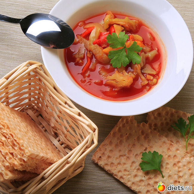 Прекрасно сочетается вафельный хлеб с первыми блюдами, особенно молочными, мясными и рыбными супами, с меньшей пользой для фигуры с овощными, макаронными и фруктовыми, так как они содержат большое количество углеводов.