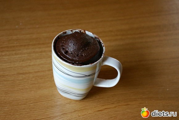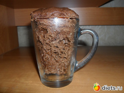 2. Сухие компоненты перемешиваем прямо в бокале (НЕ МЕТАЛЛ!!!), содержимое из блендера в бокал, всё перемешиваем, перемешиваем, до однородного состояния, потом в микроволновку на 5 минут при полной мощности. Желательно накрыть чем-то)