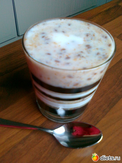 Проснувшись и выпив вначале стакана 3 горячей воды, через полчасика я съела свой свой утренний коктейль. Вот как он у меня выглядит (хехе, я там в ложке отражаюсь, надо ж!