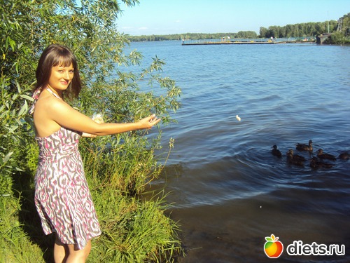 Вчера с любимым гуляли в парке - обожаем эти места! Озеро (правда в нем купаться нельзя), пляж, лес и т. п.) Это я кормлю уток (платье тоже 46 размера и тоже мне велико):