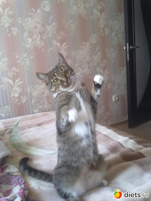 А еще пока с первого на пятый поднимался - мявчал как резаный, чтоб ему двери открывали, и любил жутко чтоб его гладили, не погладишь - не будет есть...