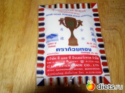 Агар-Агар (от малайского агар-агар — водоросли) — продукт (смесь полисахаридов агарозы и агаропектина), получаемый путем экстрагирования из красных и бурых водорослей (Gracilaria, Gelidium, Ceramium и др.), произрастающих в Белом море и Тихом океане, и образующий в водных растворах плотный студень.
