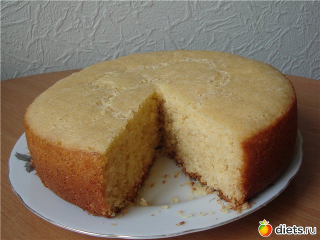 7. Далее два варианта: 1. Оставляем всё, как есть, разрезаем. остужаем и угощаем гостей. 2. Разрезаем повдоль манник на два коржа, промазываем сметаной + сахар, снова соединяем коржи, получается минитортик