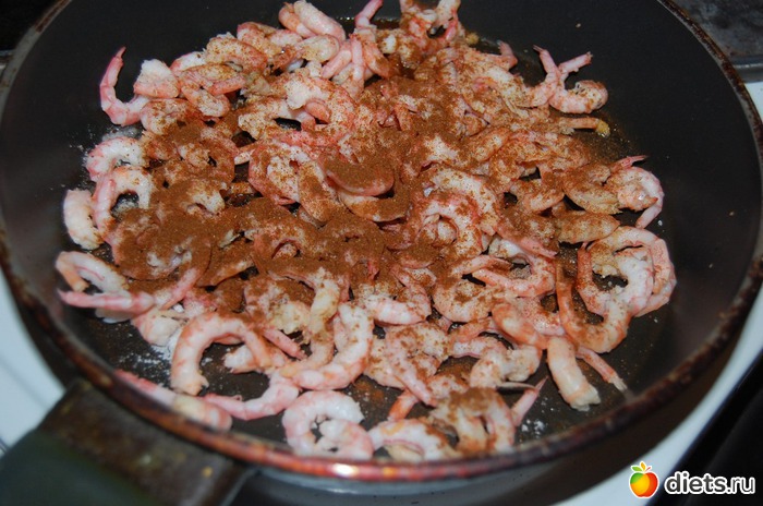 охладить, очистить от чешуи (кожуры, панцирей – кто как хочет), просушить на сковороде с добавлением щепотки-другой красного перца,