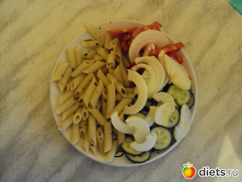 У меня углеводный день) На завтрак была груша, на обед макароны с овощами: