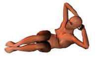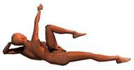 2. Левая рука прмая, за головой, почти касаясь пола. Правая рука вдоль тела, параллельна правой ноге.