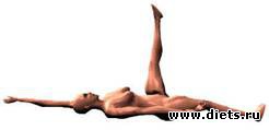 1. Лечь на спину, левая нога вертикально вверх, правая нога горизонтальна, параллельна полу, но не касается пола.