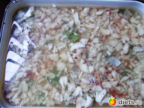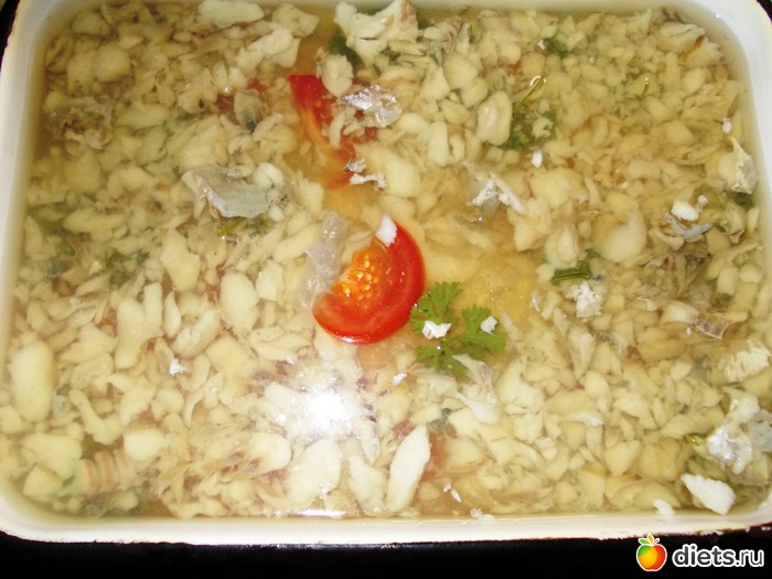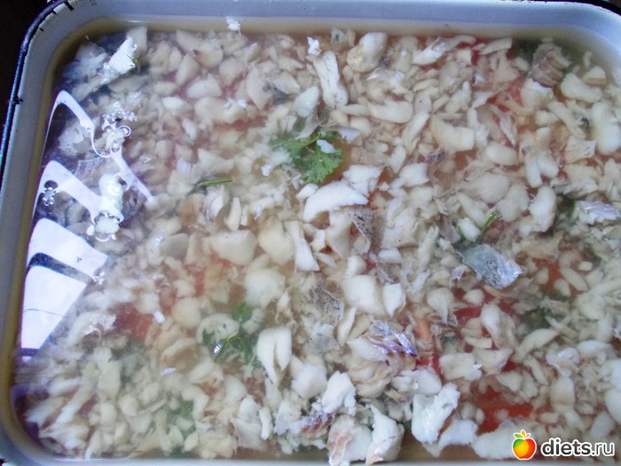 2 часа в холодильник до застывания бульона. Это надо, чтобы рыба с овощами не перемешалась.