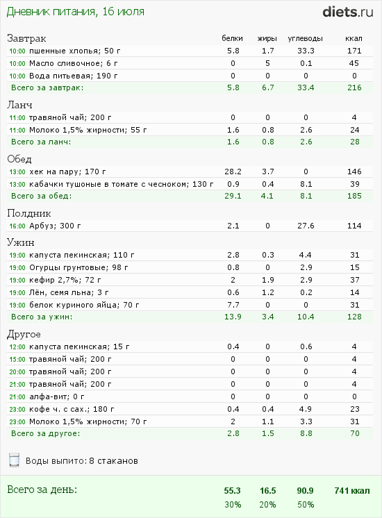 Это план питания на сегодня, остальные дни ничем не отличаются, если будут советы и замечания, приму с благодарностью!
