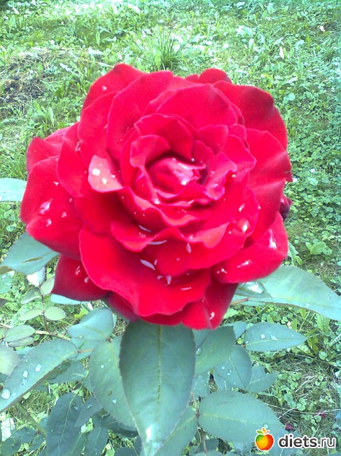 Уход за розами начинается чуть ли не на следующий день после посадки. На этом этапе он сводится в первую очередь к своевременным поливам, особенно, если стоит сухая и жаркая погода. Чтобы молодые растения как можно быстрее прижились на новом месте, им прежде всего нужна влага, причем равномерно распределенная по всему объему почвы в зоне расположения корней. Поэтому поливать рекомендуется из лейки с мелким ситечком и так, чтобы вода проникала в землю достаточно глубоко и доходила до каждого корешка. Полив из шланга нежелателен, так как под напором воды верхний слой почвы будет неизбежно размываться, вода растекаться по поверхности, а до корней так и не дойдет. Неплохой вариант — полив из дождевальной установки с вращающимся разбрызгивателем. Но проводить его рекомендуется только весной и в начале лета (лучше с утра), чтобы стебли и появившиеся молодые листья успевали к вечеру обсохнуть. Летом чрезмерное увлажнение листьев может стимулировать развитие на них грибных болезней — мучнистой росы и черной пятнистости.