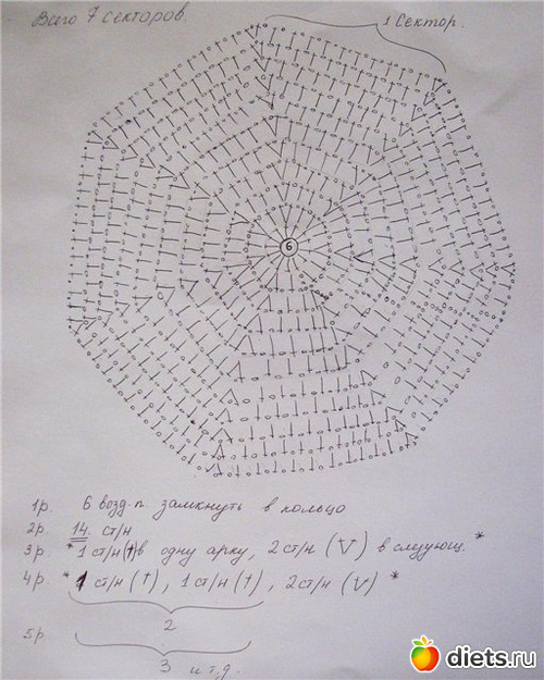 2 ряд чередуем столбик с накидом и воздушную петельку, в каждую третью петлю, двойной столбик снакидом
