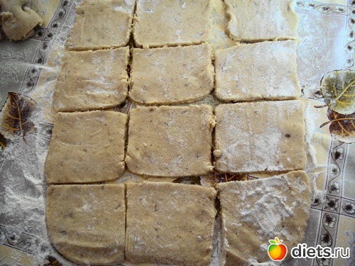 Затем тесто раскатать в пласт, толщиной 0,5 см.