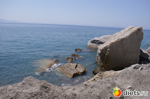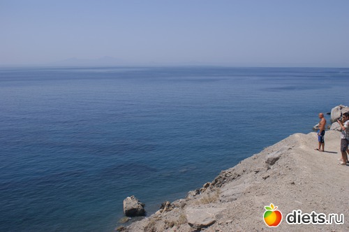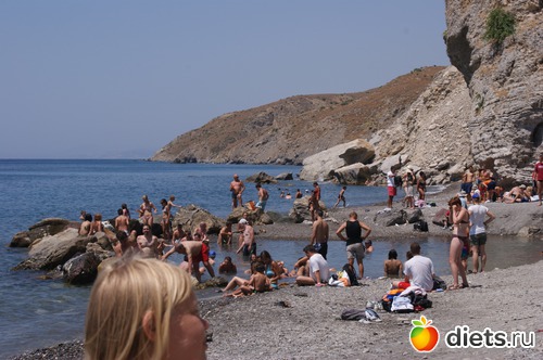 Да, да! Эта вот лужа в море, обрамленная камешками, в которой лежит толпа незнакомых людей и ни у кого не просят справку.. По слухам, источник очень целебный! Тетки лежат с раздвинутыми ногами, т. к. все утверждают, что источник лечит гинекологию.. дядьки лежат на пузах - видимо, тоже лечат свою гинекологию.. блин, ну вот всегда говорила - реклама - двигатель торговли! Дети с мужем побежали лечиться.. я стояла и думала - лезть или не лезть? В итоге решилась, зашла по щиколотку - ой, как горячоооооооооо! КАК ОНИ ТАМ ВООБЩЕ ЛЕЖАТ? Не, не пойду.. брезгливо всё-таки... Хотя прикольно - вода кипяток и снизу бьют пузырьки.. говорят, это из Ниссироса, соседнего острова-вулкана.. Рядом с Термами было чистейшее море, вот туда я и отправилась лечиться, подальше от этой разноязычной восторженной толпы.. Удивительно, но в море то и дело проходили горячие течения и сменялись очень холодными! Моим детям лужа очень понравилась и они после моря снова пошли в грязюку)))