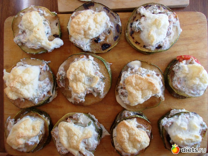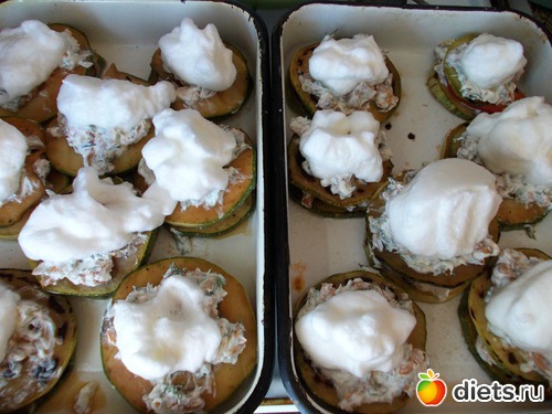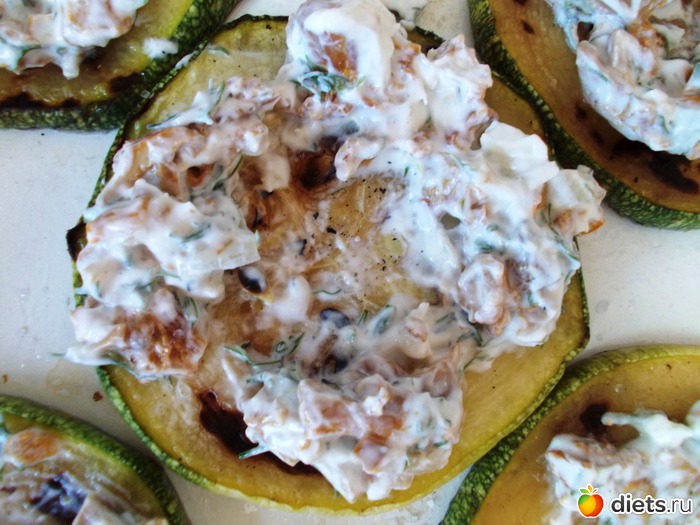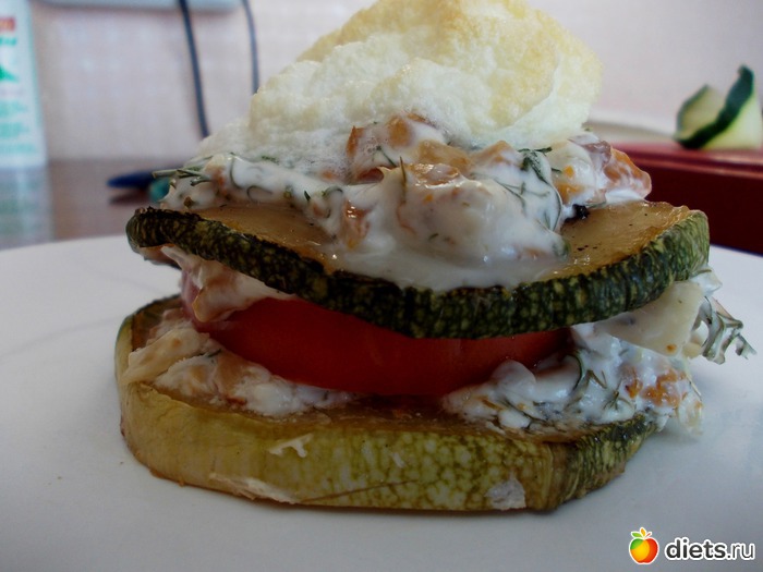 Кабачковые «гамбургеры» с творожно-грибным соусом.
