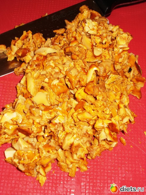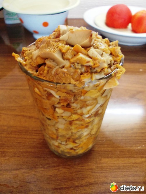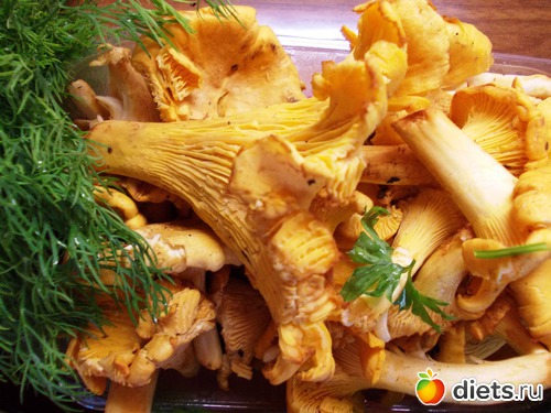 Грибы (я брал лисички) - можно использовать любые (кроме белых) - возьмём средний показатель-