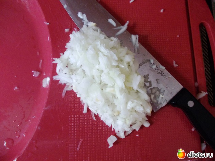 Когда грибы сварятся, отбрасываем в дуршлаг, промываем, хорошо отжимаем от воды, мелко нарезаем