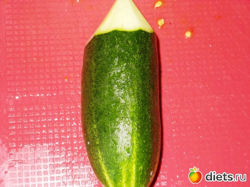 Кабачок нарезать поперёк, на 30 кружков. Т. к. наш кабачок примерно 30см. то получается, что толщина одного кружка будет примерно 1см. (надо резать с учётом диаметра - т. е. где кабачок тоньше, резать примерно 1.2см., а где диаметр больше резать по0.8см (меряйте линейкой)).