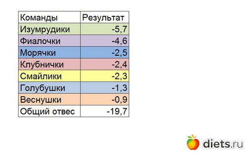 tavsia, Львица, Mama_Halifi, Таннечка и Агат - их вес снизился на килограмм и более! Берем с вас пример, вы тоже наши лидеры!