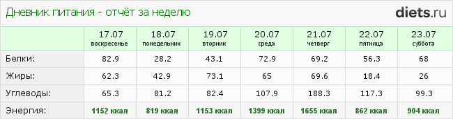Вес уходил неохотно - всего 0,4кг покинуло меня за эти 7 дней.