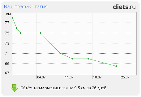 У вот я на пороге у своей первой цели. Я думаю, стоит подвести итог того, что я успела до этого дня (худеть я начала с 01.07.2011).