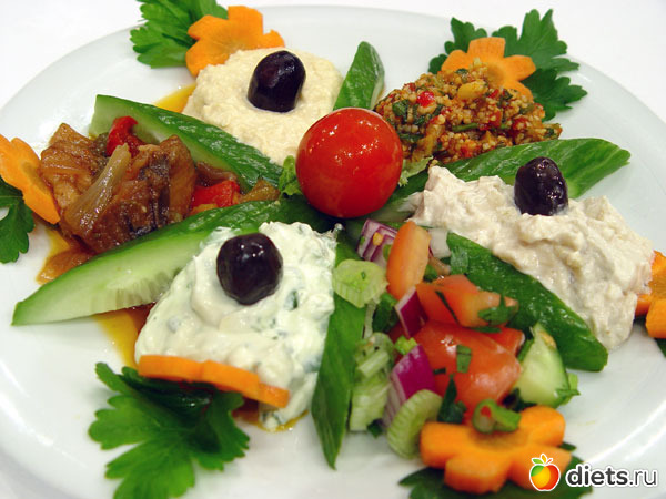 ланч в 12:00 салат (огурец, капуста, зелень, ростки + раст масло) + несколько оливок