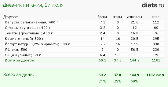 "При ООВ равном 1200 ккал необходимо в день съедать (1-2 недели):