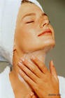 Кремы наносят по специальным правилам. На тыльную сторону пальцев правой руки положить немного крема и похлопывающими движениями снизу вверх в левую сторону шеи, а левой рукой – в правую начинать «вбивать» его. Затем очень осторожно, чтобы не потревожить щитовидную железу, нанести средство на центр шеи. Похлопывать нужно так же и подбородок, и шею с боков.
