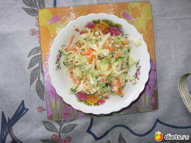 100 гр. этого салата содержат белков -1.5гр., жиров - 2.4 гр., углеводов 4.5гр. и всего 44.9 ккал... Читать полностью
