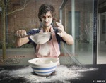 10. Насыпьте 200г муки в стакан, затем высыпите в таз с желтками. Оставшиеся 800г муки аккуратно соберите обратно в пакет.