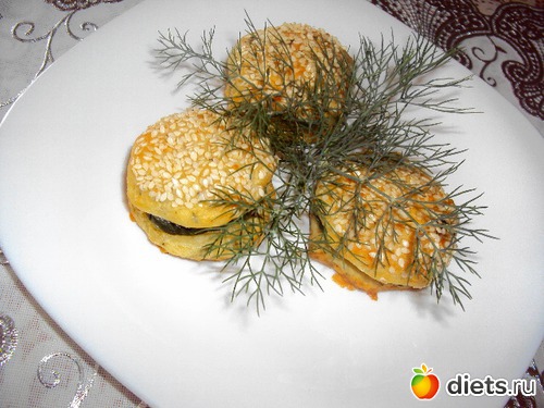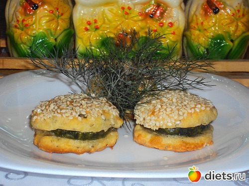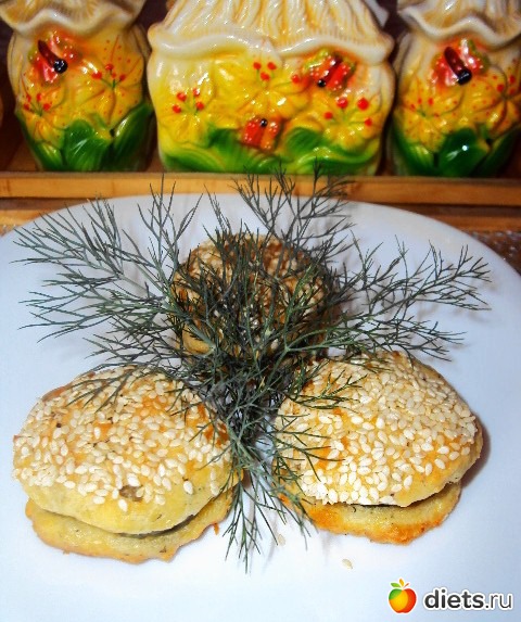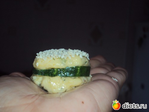 лепёшечкой, хорошо прижать и обмакнуть верхушку в кунжутные семена.
