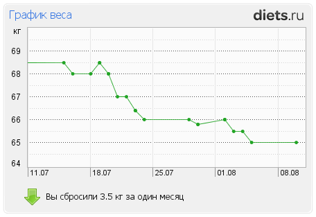 Мой результат за месяц минус 6 кг. Была я 71 стала 65. Еще буду сидеть на ней пока не будет 60. Думаю за месяц - два управлюсь