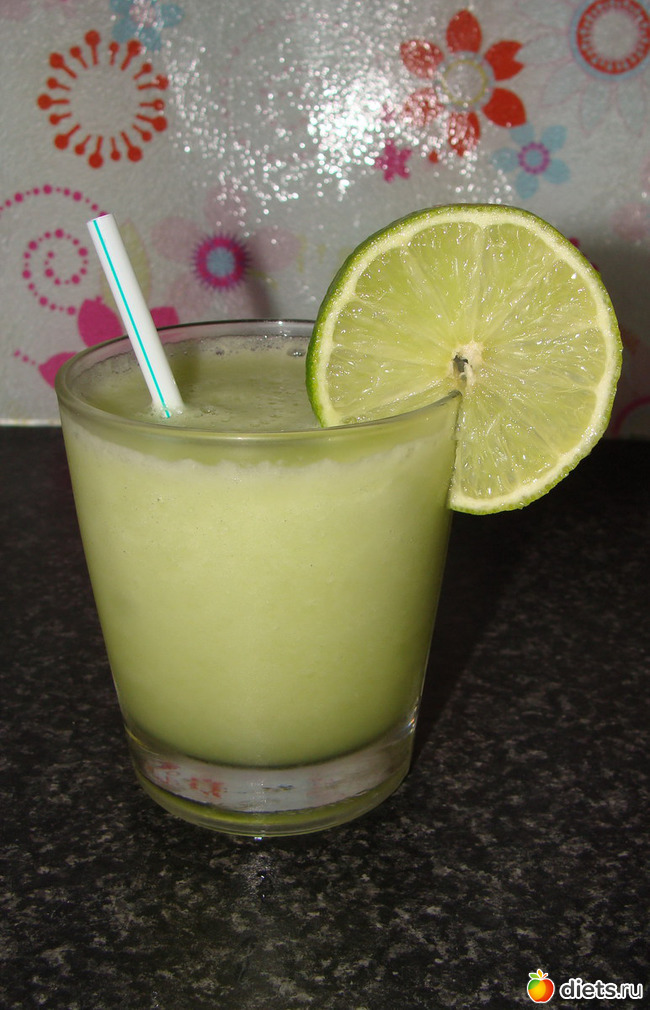 Выливаем наш прохладительный напиток в бокал или стакан и украшаем долькой лайма